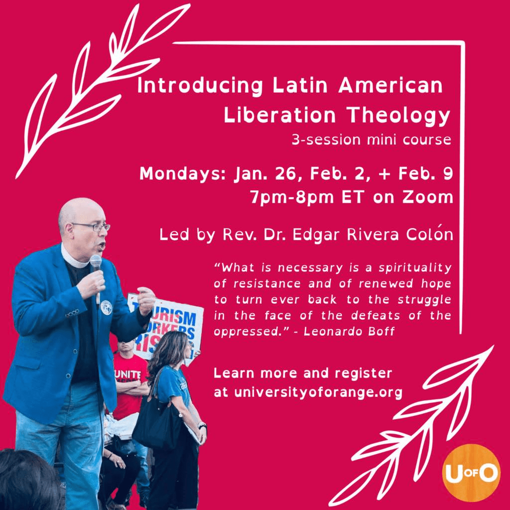 Starting next Monday January 26th, I will be teaching a three session mini-course on Latin American Liberation Theology at the University of Orange Free People’s University for Urban Restoration. All who are interested in this topic are welcome to attend. As we say at the U of O, everyone has something to teach and to learn. Hope to see you there. Registration link here and class information below: