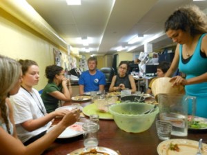 We’ll never forget our time getting to participate in worship and common meals with the Mennonite Worker in Minneapolis and then joining them in their Sunday night ritual: karaoke. Mark Van Steenwyk belted out delicious samples of Garth Brooks and Weird Al, while we made complete asses of ourselves stumbling through the lyrics of Paul Simon and Carly Rae Jepson. We’ll never forget joining in on the laughter, passion and great beer at the round table discussion at the local brewpub in Winnipeg with Ched & Elaine and their entourage (including Geez Magazine editor Aiden Enns and Canadian Mennonite prof Kenton Lobe). We’ll never forget reading Bill Wylie-Kellermann’s basketball memoir published in a local Detroit newspaper a few years ago during the Final Four. We’ll never forget swigging beer with Bill Heffernan and then watching him perform live at the Hole-In-The-Wall in Toronto. We’ll never forget the blend of laughter (and tears) shared during lunch with the leaders of Ripple, an urban Mennonite Church in Allentown, PA (below). We’ll never forget Sister Carol telling us about the weekly tradition of beer, popcorn and movies every Friday at Jonah House in Baltimore. We’ll never forget our impromptu dance party with the children of the Wilderness Way community in Portland.