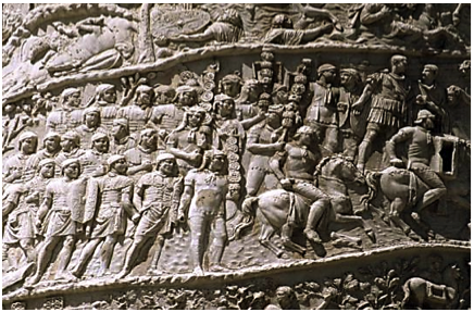 The imperial triumphus was both a civil ceremony and religious rite, held to celebrate publicly and to sanctify the achievement of Roman commanders who had won great military successes. We can see this depicted in Trajan’s Column in Rome (ca. 113 CE), commemorating emperor Trajan’s victory in the Dacian Wars (right). On the day of his triumph, the general wore regalia that identified him as near-divine or near-kingly. He rode in a chariot through the streets of Rome (or of the conquered city!) in procession with his army and the spoils of his war. It is this imperial spectacle that the writer of Colossians later parodies in Col 2:15—in which the risen Christ parades the principalities and powers who have been defeated by the cross—an intentionally ironic image. [1]