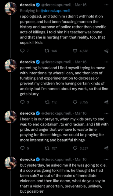 What do You Say to That? On March 24, 2023March 23, 2023 By RadicalDiscipleshipIn Race, Subverting Empire A Twitter thread from Derecka Purnell, a lawyer, community organizer and author of Becoming Abolitionists (2022) Share this: Click to share on X (Opens in new window) X Click to share on Facebook (Opens in new window) Facebook Like Loading... Related