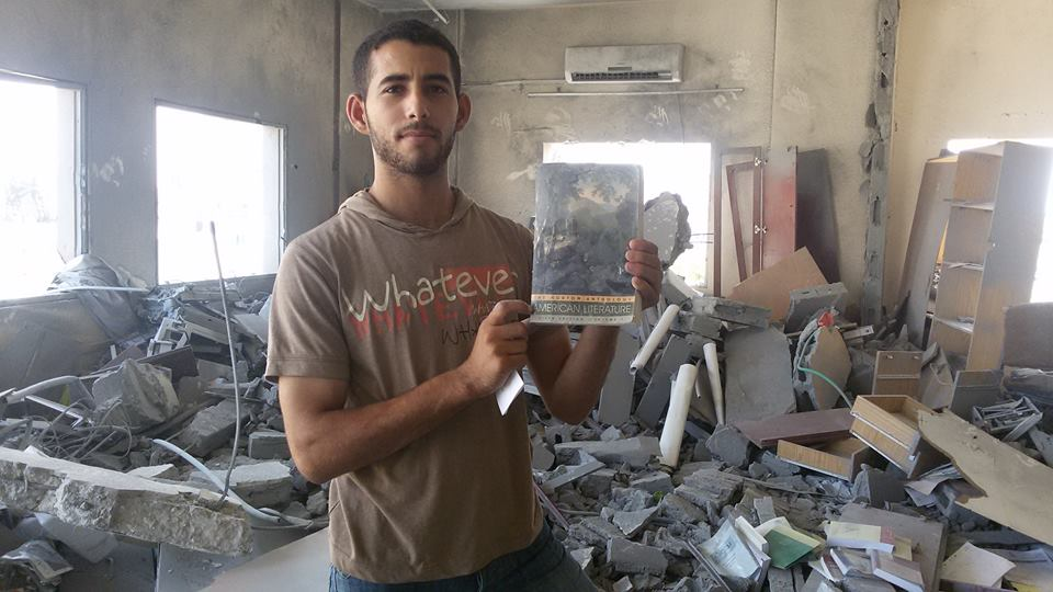 I hope to at least find a copy of my own poetry book, maybe near my neighbor’s olive tree, but there is nothing but debris. Nothing but the smell of explosions.