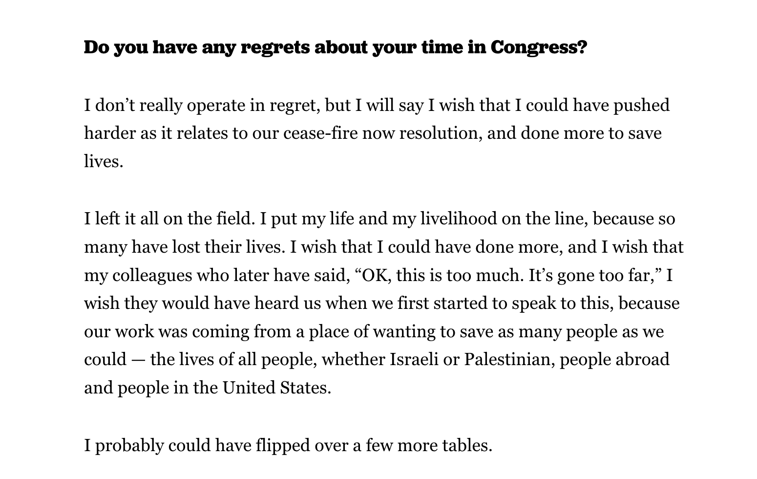 A Few More Tables On January 9, 2025January 7, 2025 By RadicalDiscipleshipIn Biography as Theology, Subverting Empire From Cori Bush’s exit interview in Politico. Share this: Click to share on X (Opens in new window) X Click to share on Facebook (Opens in new window) Facebook Like Loading... Related