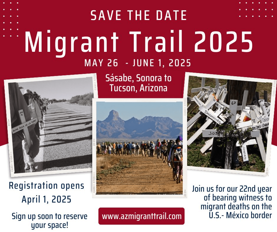 A compelling offering from The Migrant Trail, a spiritually diverse, multi-cultural group who walk together on a journey of peace to remember people, friends and family who have died, others who have crossed, and people who continue to come.
