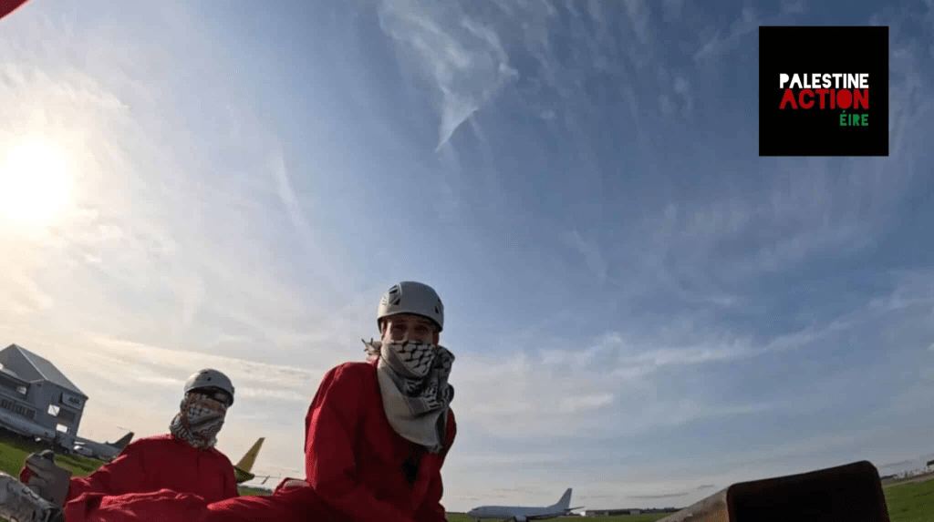 Earlier this month three women from Palestine Action disrupted and confronted a large plane contracted by the US Military at the Shannon Airport in Ireland. Planes such as this one carry Troops, Weapons and Military Equipment that carry out War Crimes in Palestine, Yemen and many other war zones that the USA is involved in. This goes directly against Irish Neutrality and the will of the people of Ireland. This is a statement from one of the Palestine Action Éire activists.